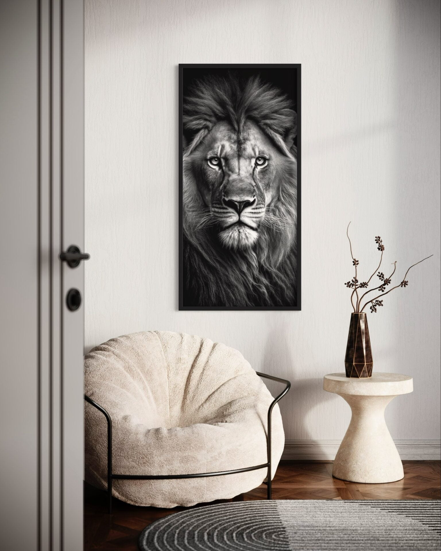 El marco no debe competir con la obra, debe contenerla. Usamos molduras de perfil minimalista que dan un acabado limpio y moderno sin robar protagonismo a la fotografía
